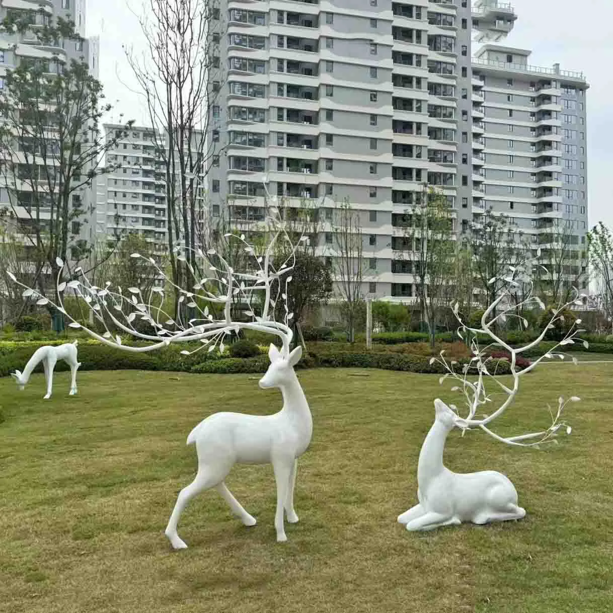 White Stainless Steel Deer Sculpture With Tree Antlers