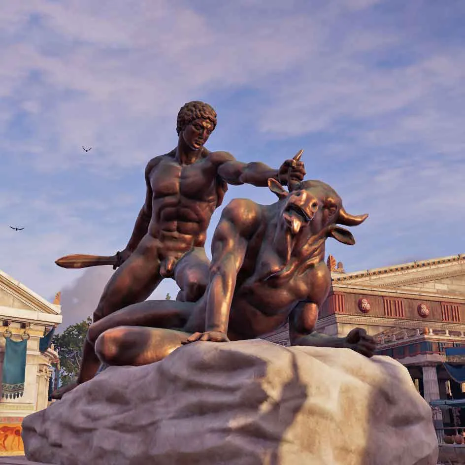 The subjects of this sculpture are Theseus and the Minotaur. The sculptor’s exquisite skills make the images of these two characters lifelike, as if they are about to emerge from the sculptures and start a life-and-death battle again. Theseus is depicted in the sculpture as a heroic warrior, sword in hand and steely-eyed, ready to attack the Minotaur. The Minotaur looks like a powerful minotaur, glaring angrily, ready to fight Theseus with great power.